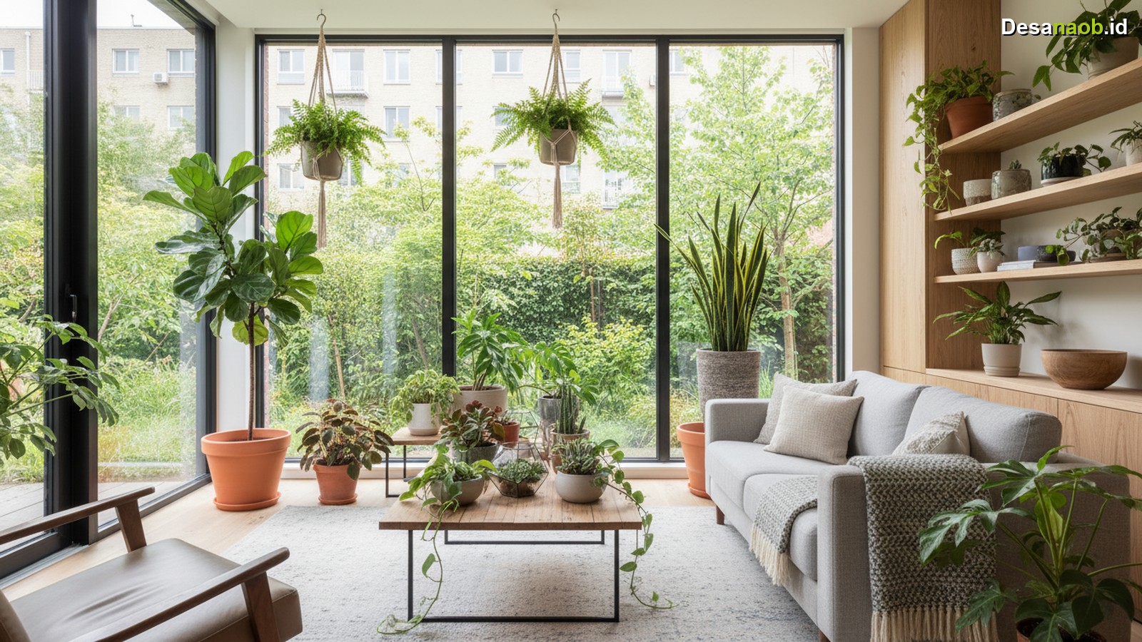Kemudian, rak gantung dan rak dinding menawarkan solusi cerdas untuk menghemat ruang sekaligus menampilkan koleksi tanaman hias. Tanaman menjuntai seperti string of pearls atau spider plant akan terlihat cantik pada rak gantung, menciptakan efek air terjun hijau. Rak dinding minimalis memberikan peluang menampilkan sukulen kecil atau kaktus sebagai galeri seni alami.
