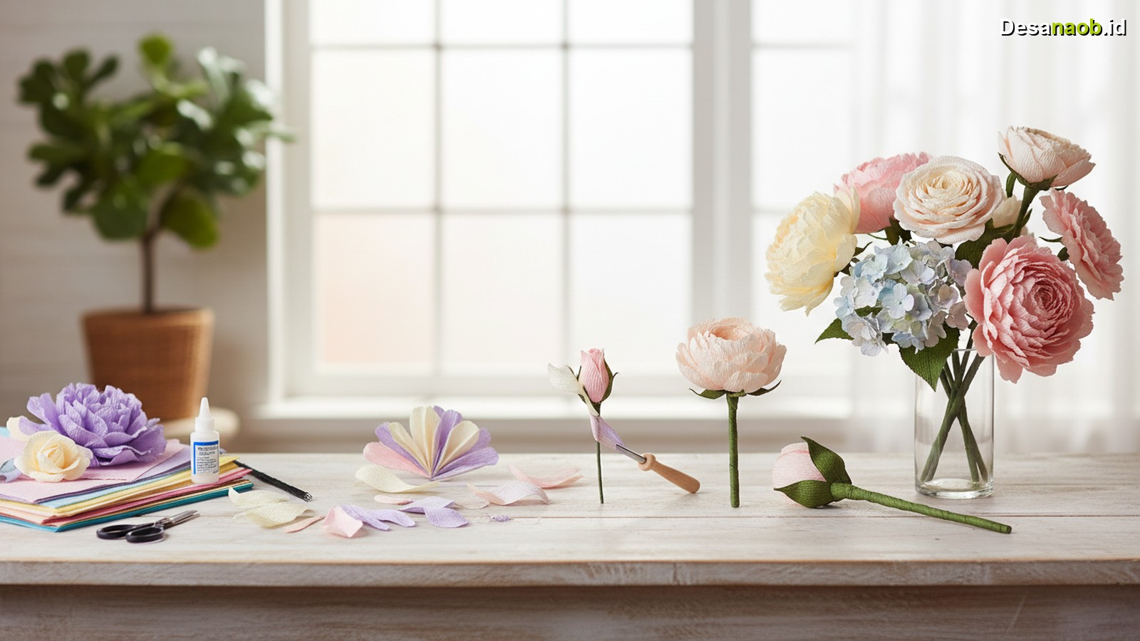 7 Langkah Mudah Membuat Bunga dari Kertas Krep