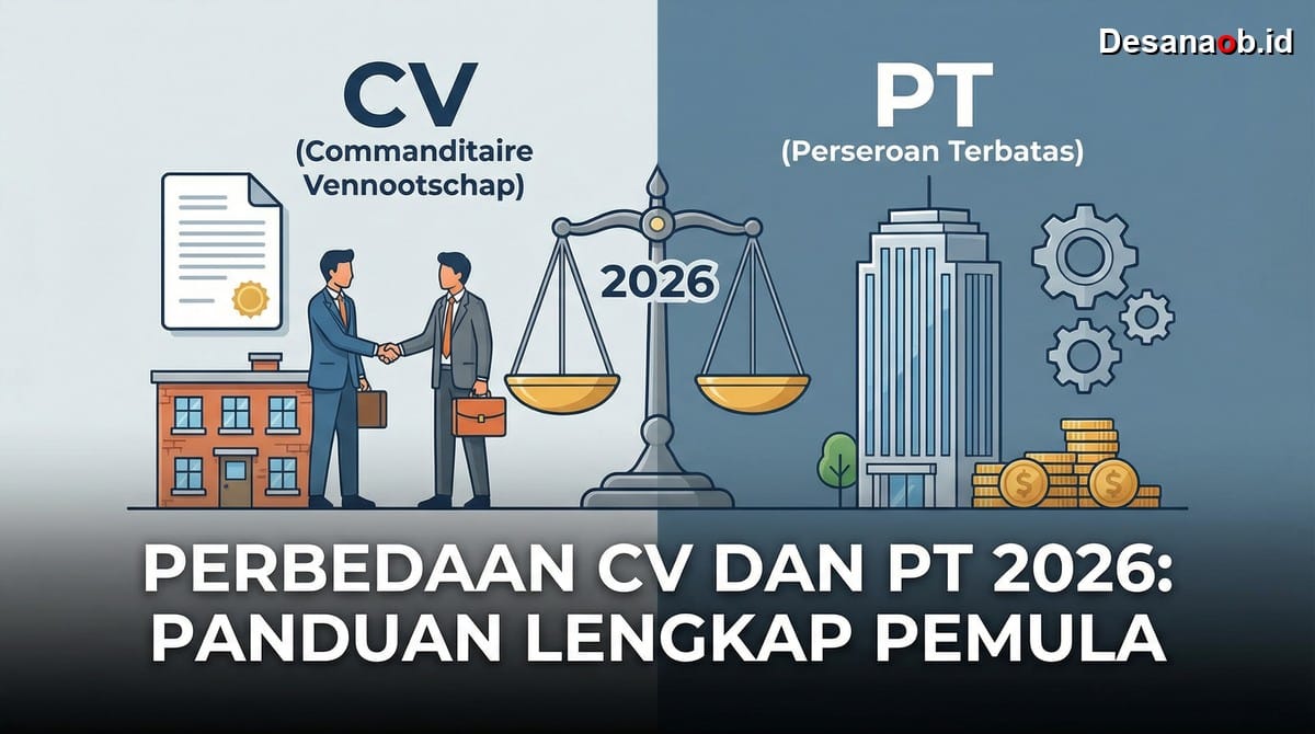 Memahami perbedaan CV dan PT menjadi langkah krusial bagi pelaku bisnis di tahun 2026. Pemilihan badan usaha yang tepat akan memengaruhi kewajiban pajak, perlindungan hukum, hingga kemudahan akses modal investasi. Artikel ini mengupas tuntas komparasi keduanya agar legalitas bisnis dapat berjalan lancar sesuai regulasi terbaru tahun 2026.