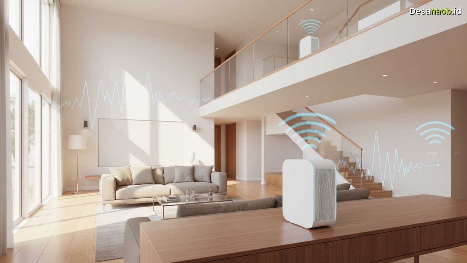 1. Letakkan router di lantai 1 bagian tengah — sinyal menyebar ke segala arah secara lebih merata dari posisi pusat rumah.